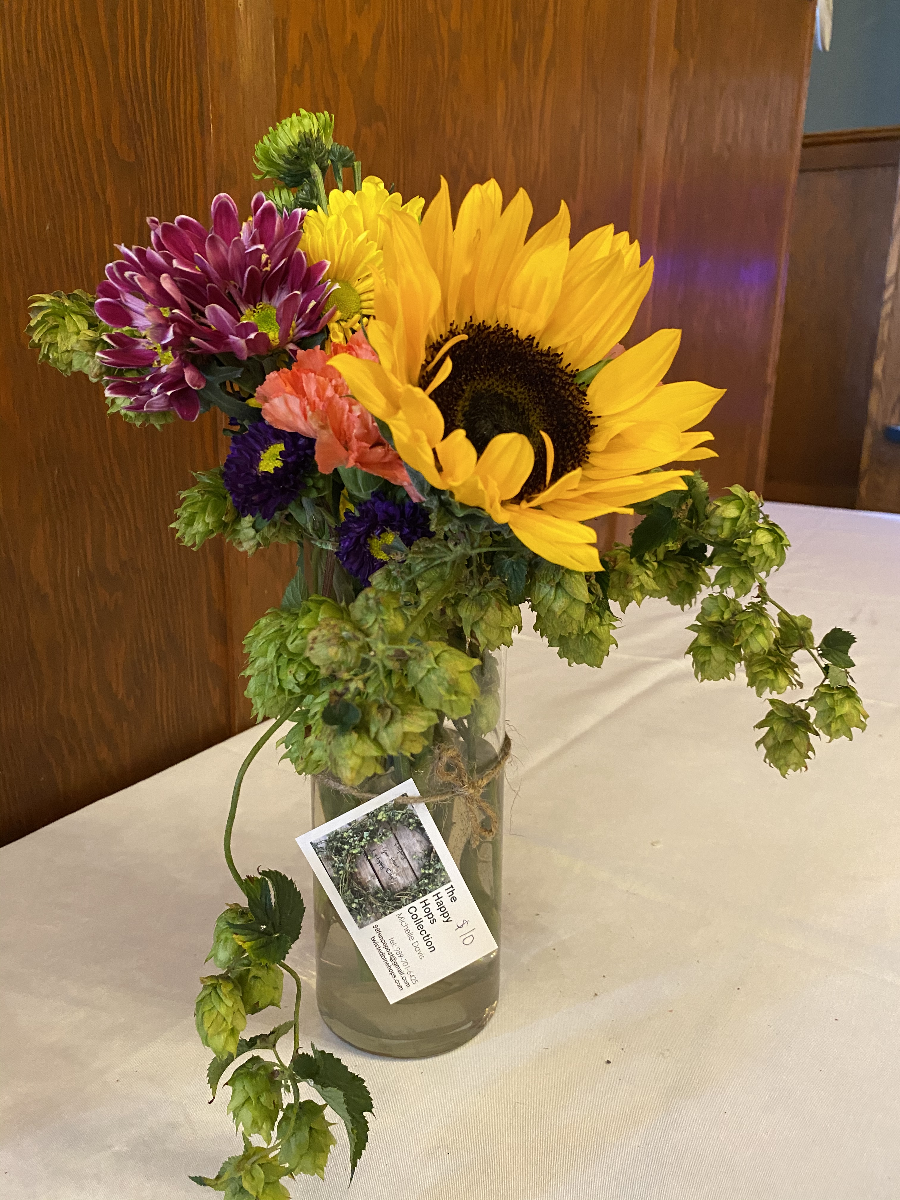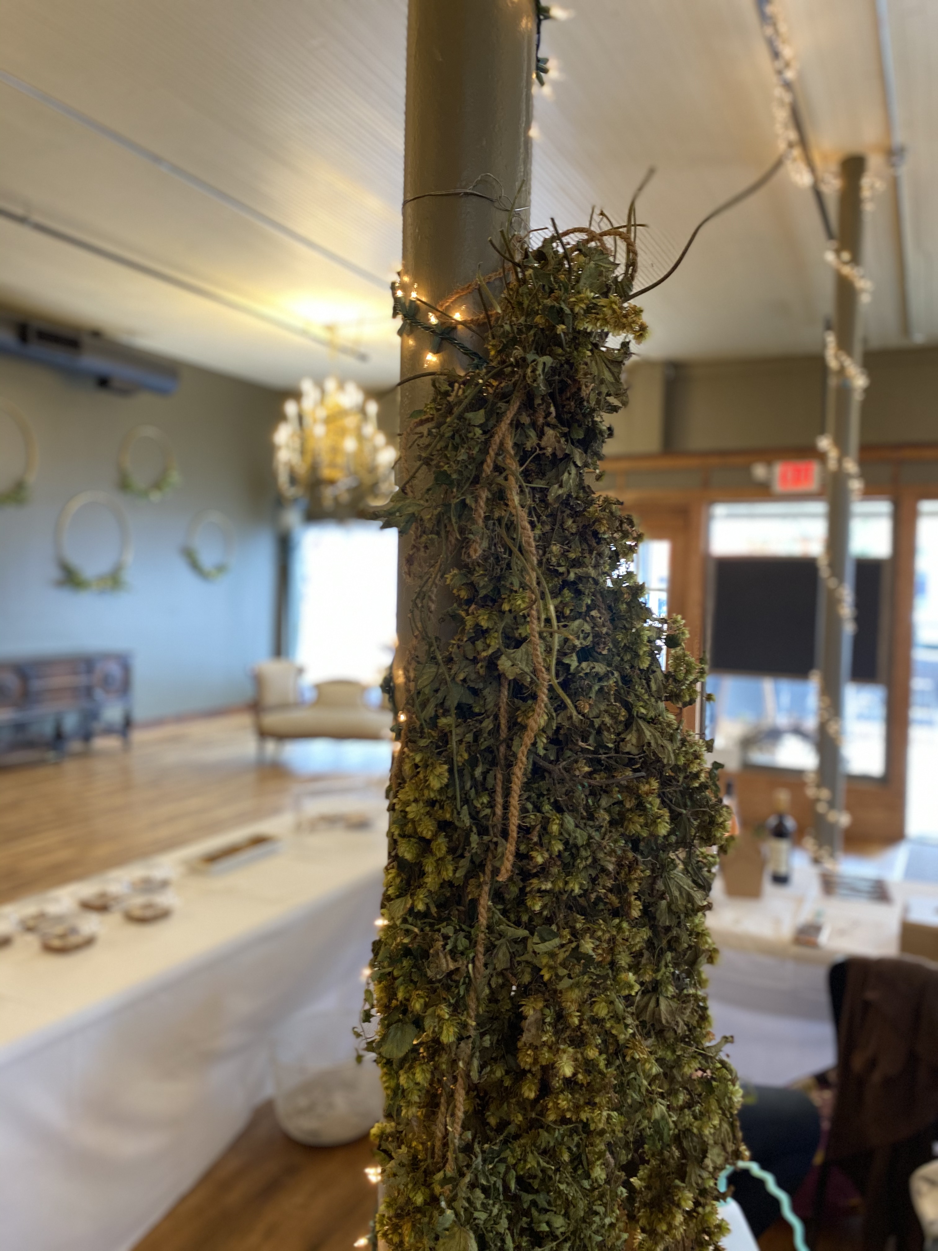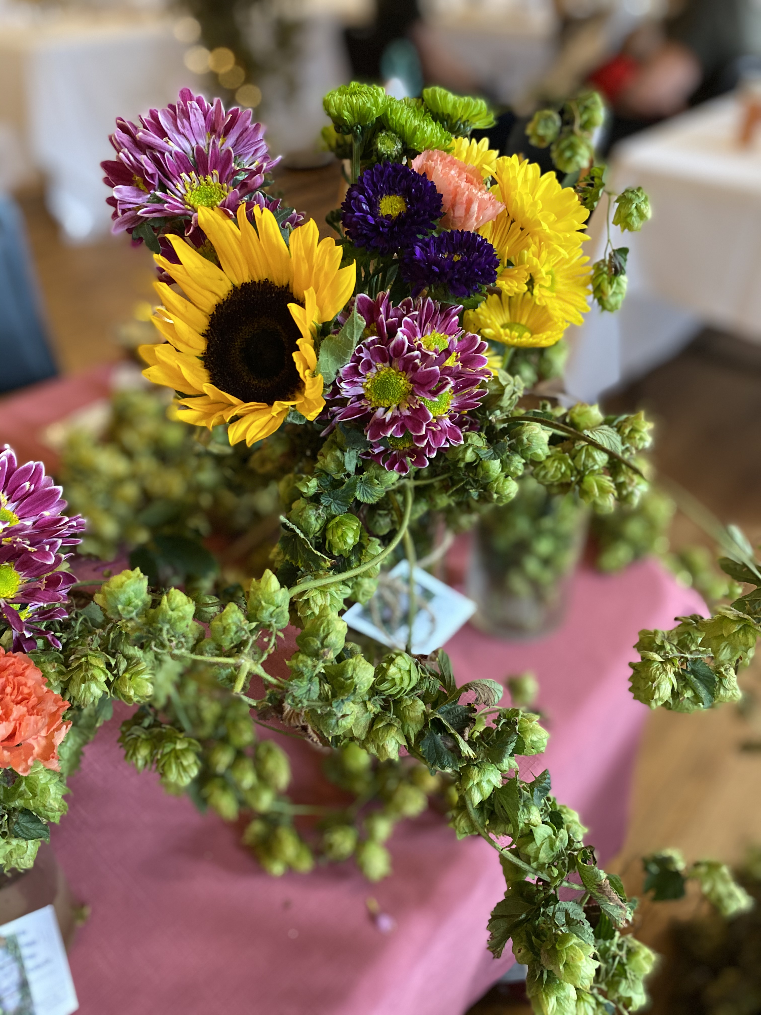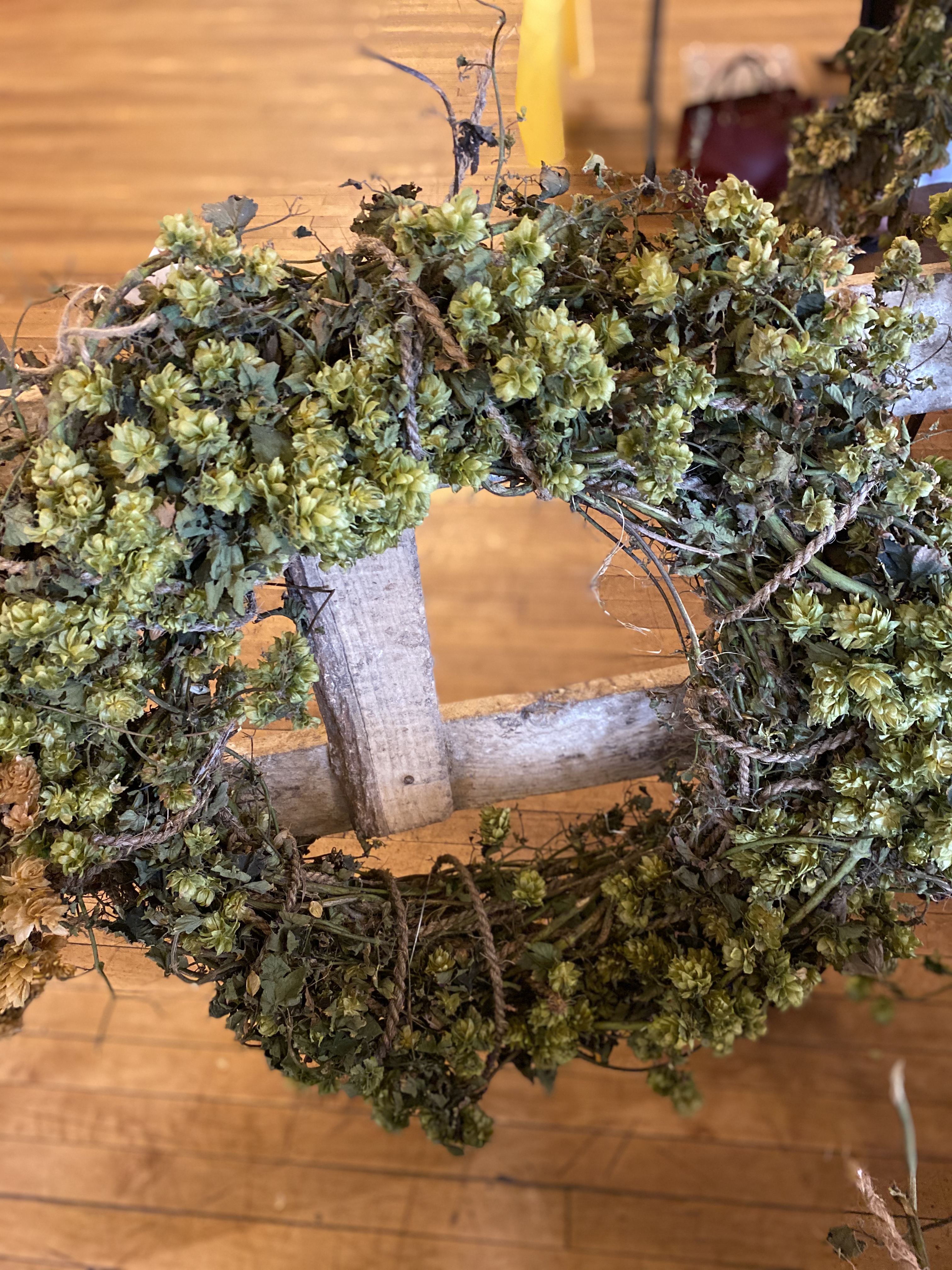 Here are some pictures from today’s event. Many people stopped by and complemented our hop display which included swags, wreaths, flower & hop arrangements and dried hop cone goody bags. Most people said they had never seen hop bines or even knew they were so beautiful and fragrant. Enjoy!