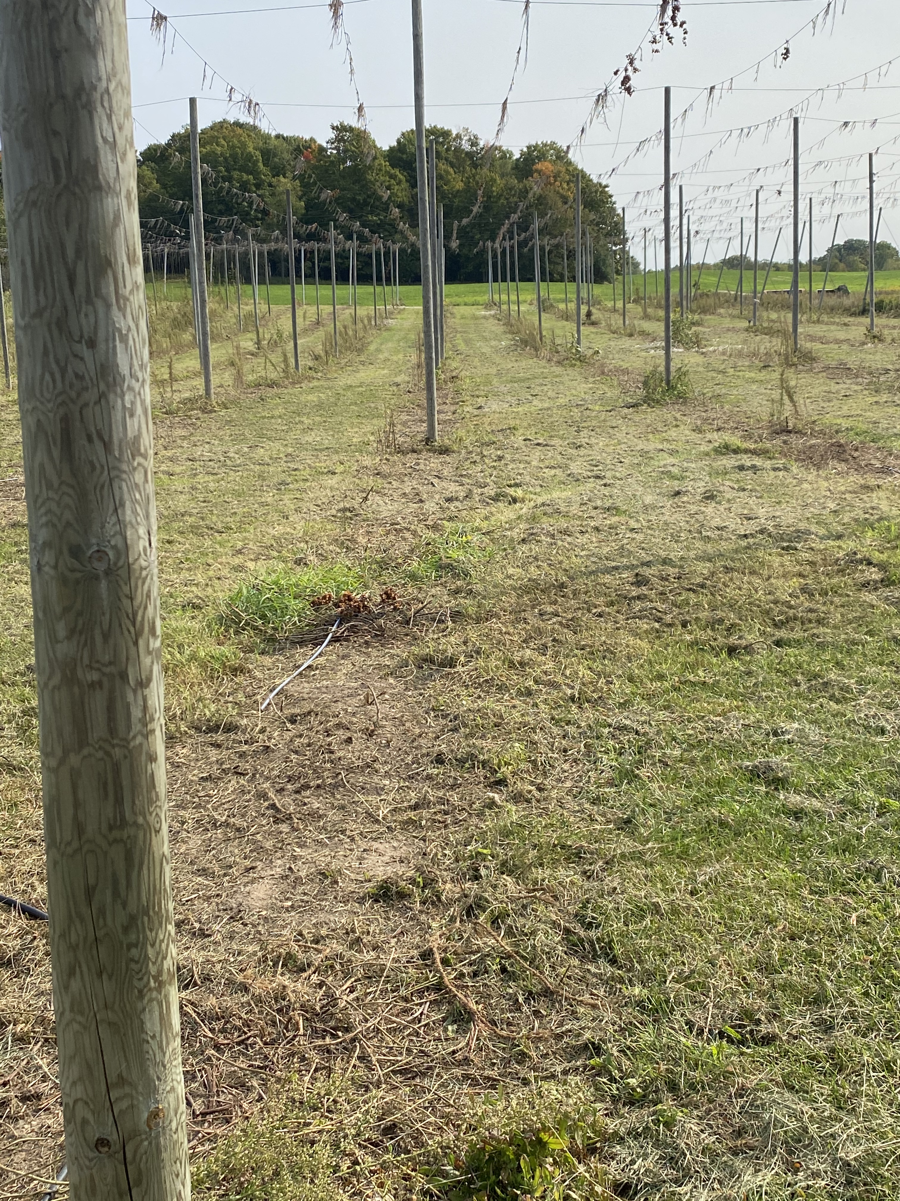 Over the weekend, Twisted Bine Hop Yard began its post season chores. Thankfully the weather cooperated. Missed bines were removed. Weeds were mowed. Hop crowns were fertilized. Even in the off season there is much work that must be done to produce amazing hops! TBHY would like to thank Nick, Andrew, Luke and Sam for all of their hard work this weekend. The fields look great and almost ready for next season!