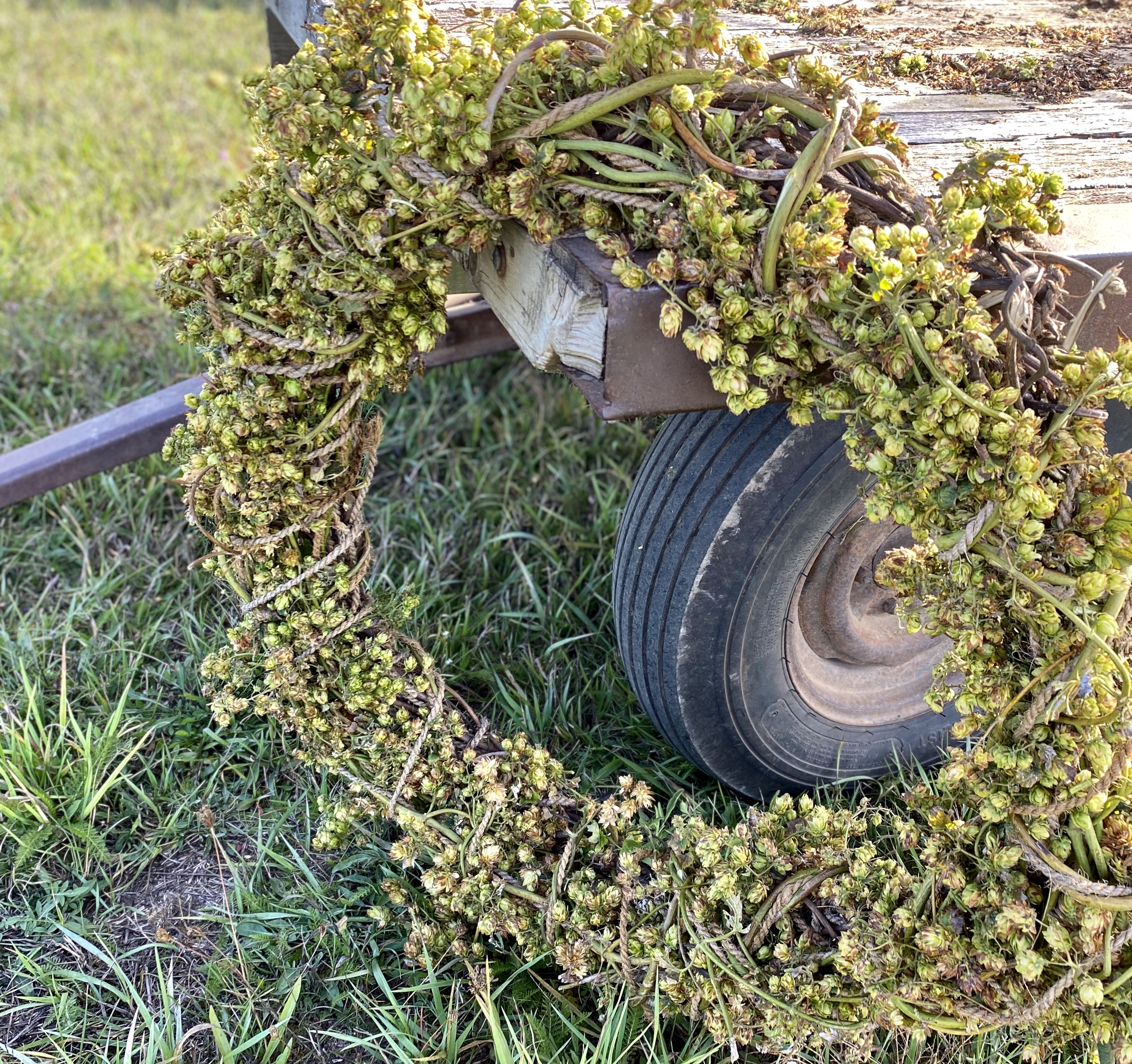 On a fun note…because the recent evenings have been fairly cool and the days fairly warm, many of the leftover bines retained most of their green color so late in the season. This provided an opportunity for a few more additions to the Happy Hops Collection.